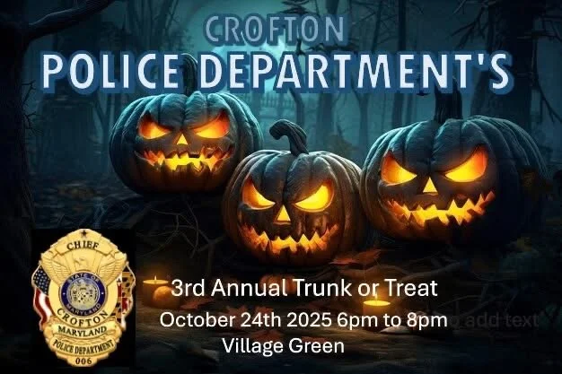 Oct 24 Trunk or Treat Friday, October 24, 2025 6:00 PM 8:00 PM Crofton Village Green (map) Google Calendar ICS View Event →